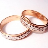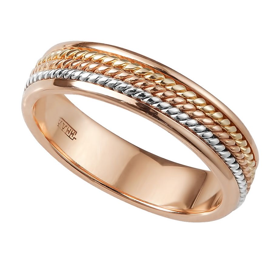 There are unusual models made of three types of gold. Such a model, most often, is made of three thin ringlets intertwined with each other, each of which is made of a certain material: white, yellow and rose gold. Such a model, as a rule, has no decor.