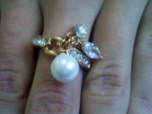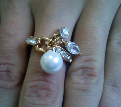 - An image that is suitable even for a social event. A refined white dress is complemented by a set of gold jewelry consisting of a bracelet, earrings and a large ring in the shape of a rose. To give an image of femininity, it is better to put a ring on the index finger.