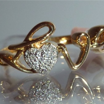For example, more romantic natures prefer a model with a heart. It may be one located in the center and made of stone or gold, or there may be several hearts located on the surface of the ring in different places.