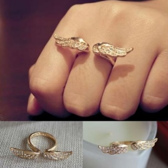 Angel wings are the latest and most popular fashion jewelry trend. The product is a standard ring, the upper part of which is made in the form of two expanded wings of a small size. This model is especially suitable for girls.