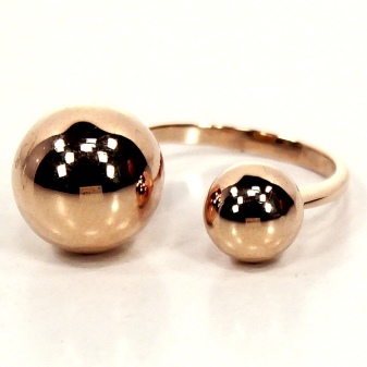 The ring has the same manufacturing principle as the model with wings. The balls are located on the disconnected upper edges of the product, one of them can be larger than the other, creating a slight asymmetry. Sometimes balls can be part of a model called a kiss.