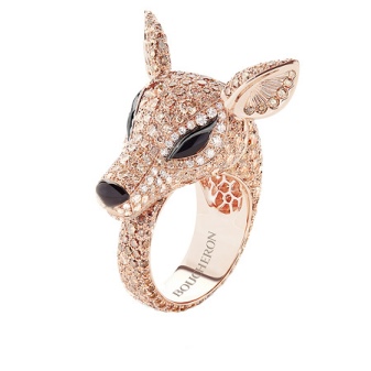 The graceful forest predator, the fox, is incredibly clever and cunning, which is probably why the eyes of the animal on the model of the corresponding ring are depicted slightly elongated, with mischief and cunning. The muzzle of an animal, painted on a ring, is most often decorated with a scattering of small diamonds.