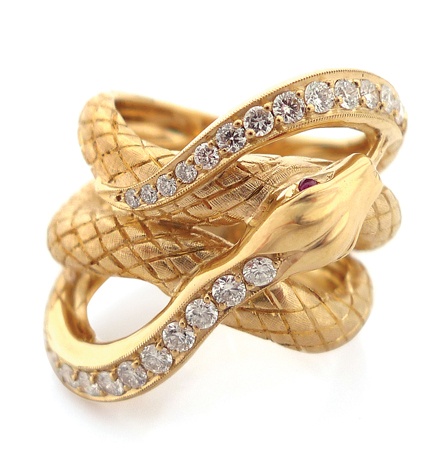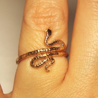 The ring - a snake twisting around a finger looks rather subtle, but at the same time a little sly, since this animal itself carries in itself some hidden meaning and danger. It is necessary to take a closer look at the owner of such a product, because his choice already says something about the character of the girl.