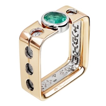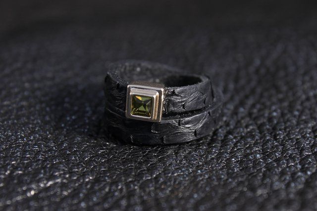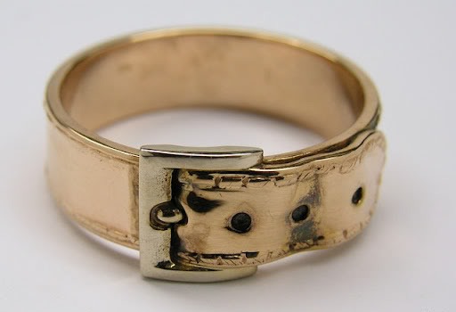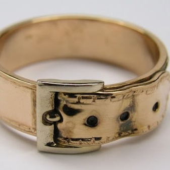 Among the unusual models can be noted a gold ring with leather. The rim of the ring is made in the form of a wide leather strap, in the middle of which there is an interesting gold detail in the form of a buckle.