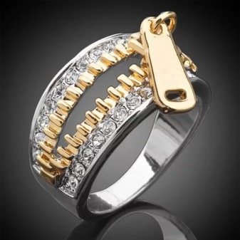 Rings can be made not only from pure gold, but also with the addition of pieces and parts from other materials. For example, gold rings with silver are popular; inserts in which look like white gold, but are much cheaper.