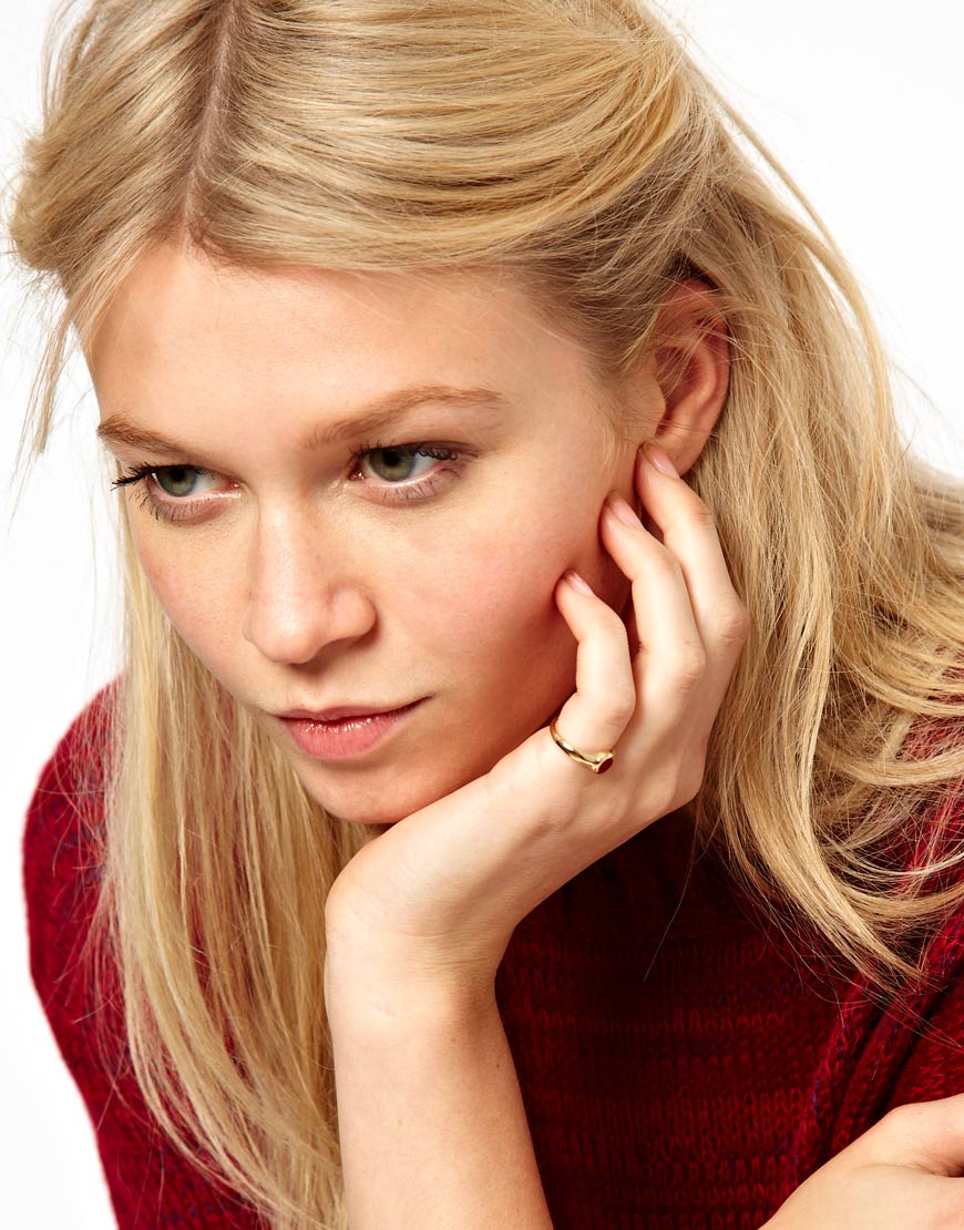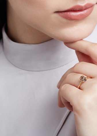 As a rule, gold rings are quite versatile in combination with clothes, so there should be no difficulties in drawing up the image. They can be complemented with a casual outfit with jeans, a bow in a business style, and an unusual retro look, and even an evening dress.