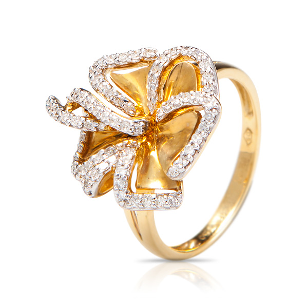 Rings are very feminine, the decorative element in the center of which is a small, neat bow. Most often it is made of gold and is not laid out completely with stones, but has only a refined decor in the form of a small diamond in the center.