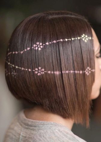 For such coloring, stencils are needed. With their help, the hair is obtained drawing (tiger, leopard print, geometric patterns). If the girl has dark short hair, take acidic or light shades (blond, ashy).