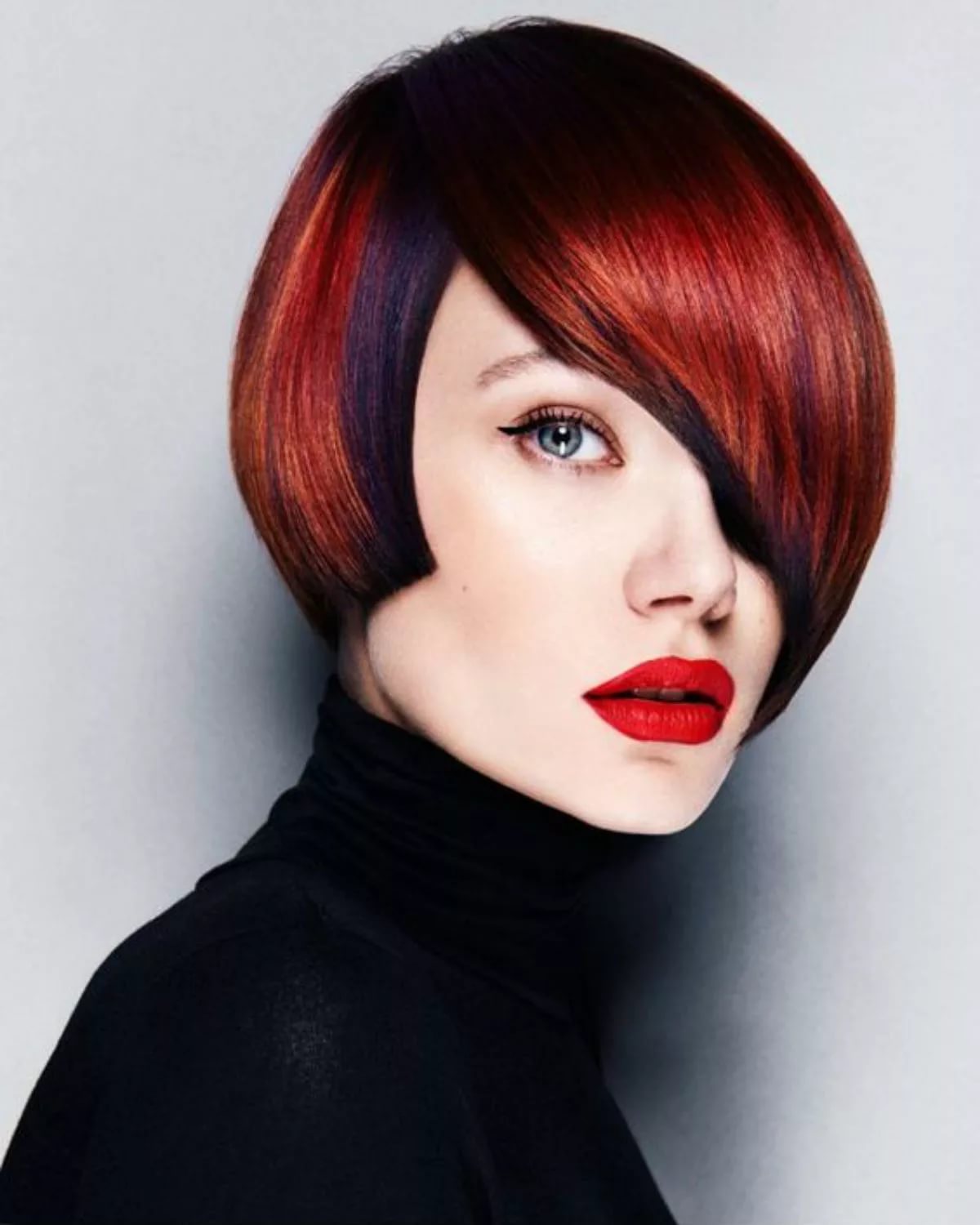 Coloring is a technique that is chosen when the bob haircut is like, but the soul requires diversity. With its help, they will create an original hairstyle and emphasize their individuality. It is better not to dye your hair at home. In the beauty salon, they will choose the right technique for brown-eyed, blue-eyed, green-eyed girls with a four-sided haircut on light or dark hair.