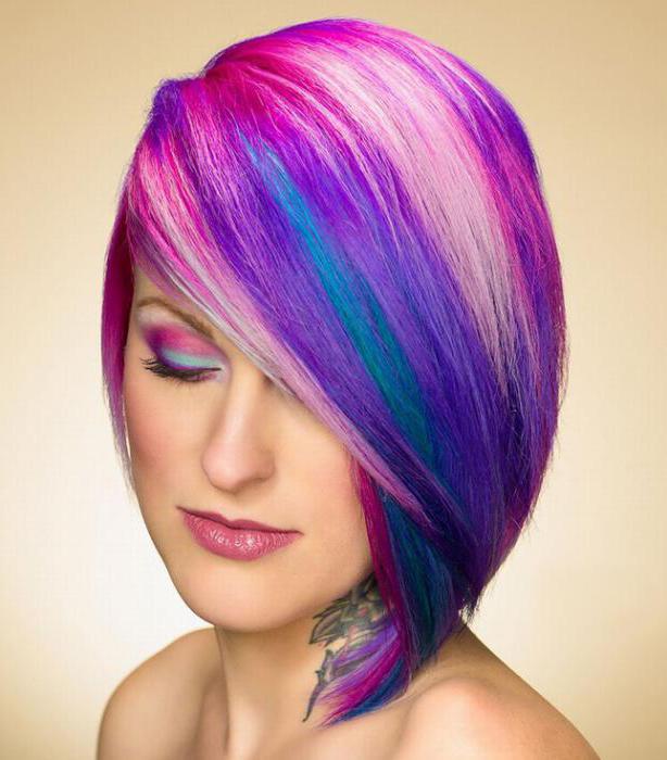 Coloring is done using wide color spectra from contrasting colors. Before the procedure, the girl should have a clear understanding of what result she wants to get. Otherwise, you will get “porridge” on your head.