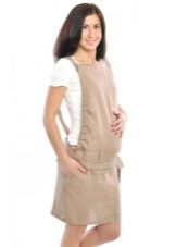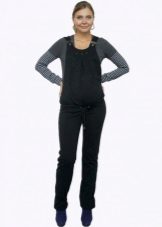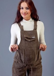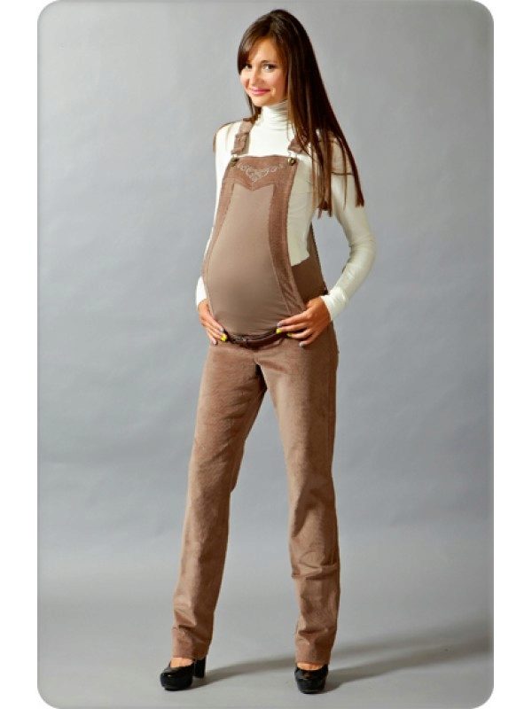 Overalls - transformers for pregnant women can be made from fabrics such as jeans, velor or corduroy. Than such things are good - you can wear trousers or capris on your own by unfastening the upper part. The wide elastic tape, in any variant, will reliably support a pregnant tummy. In such fabrics it is comfortable in cool weather or during the off-season.