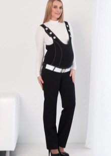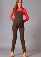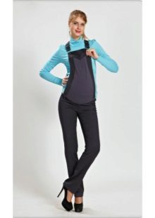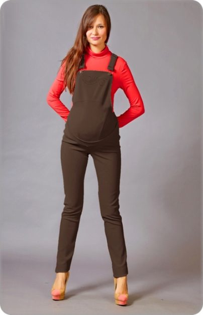 All women note the benefits of overalls. Firstly, it is convenient to combine it with a variety of blouses and blouses. Secondly, thanks to the style, mother and her baby in such clothes are comfortable. Banding band reliably supports the tummy throughout the entire period. Most importantly, the jumpsuit is well protected from wind and cold weather. Having picked up a jumpsuit from your favorite fabric and fashionable color, you can look stylish throughout the 9 months.