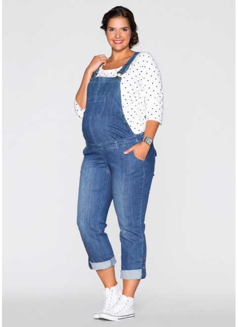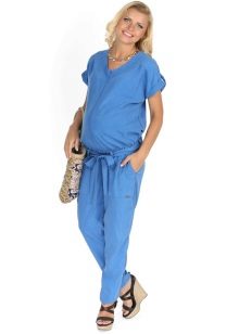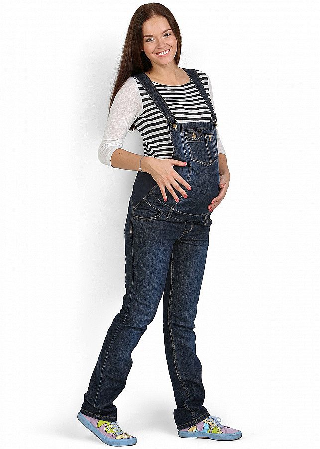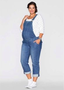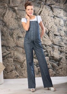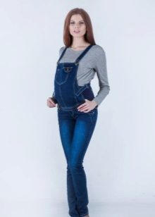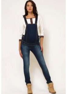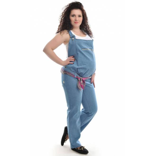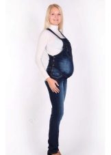 Overalls are made from different materials. The most commonly used denim. It can be summer models and warmed. Such overalls are convenient for walks and shopping trips for future dowry for a newborn. Denim models are considered to be practical: comfortable to wear, not brandy, fit almost any sweaters and T-shirts.