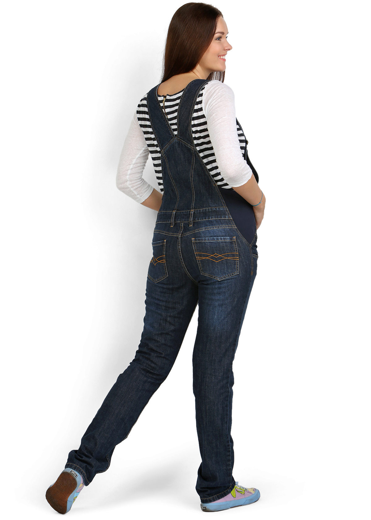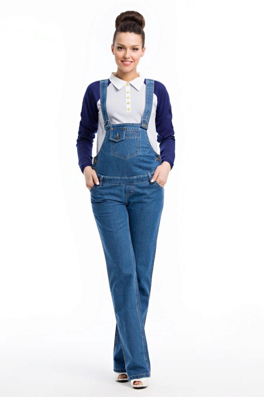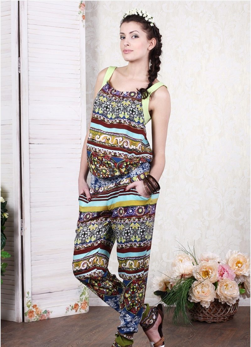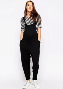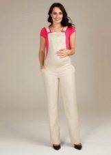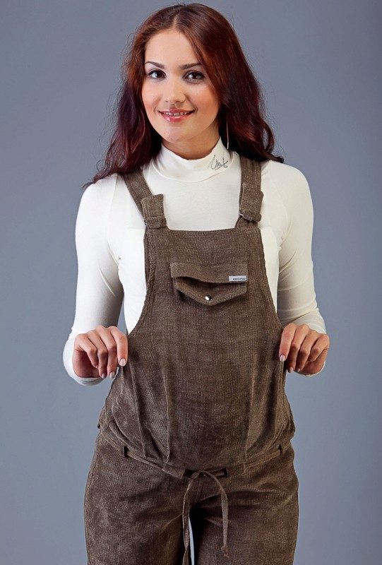 Overalls do not squeeze the body, but, on the contrary, in the area of the tummy a certain freedom is provided. The cut is absolutely safe. Clothes are made from natural fabrics. The most commonly used fabric is cotton and linen, high-quality denim. These species are considered environmentally safe, allow the body to breathe and do not cause an allergic reaction.