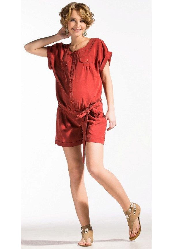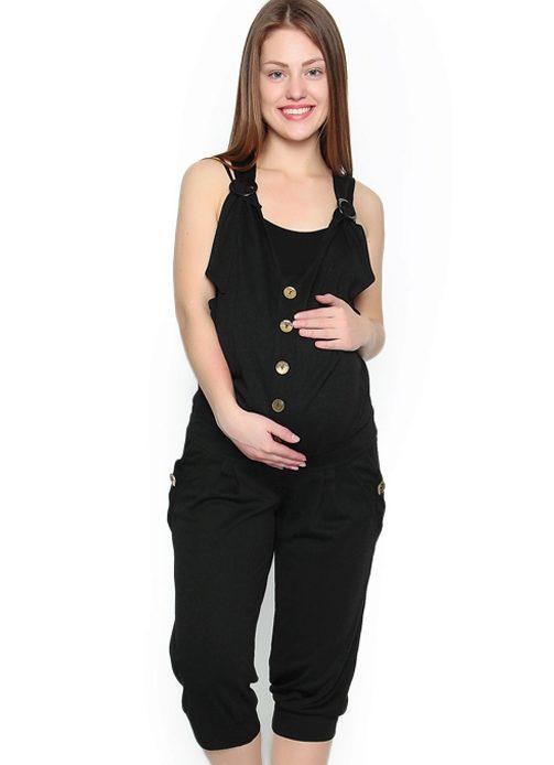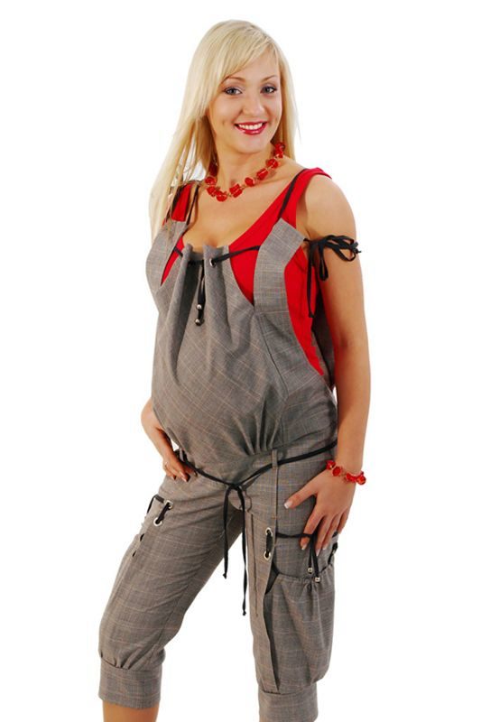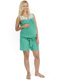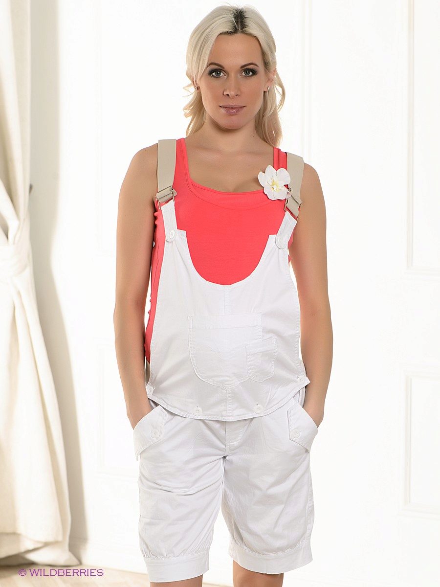 DFor heat, future moms prefer to pick up mini-overalls. Looks like low-rise shorts. The stomach is also supported by a stretching band. The upper part is fixed with clasps on the belt and comes off. Then there are only shorts.