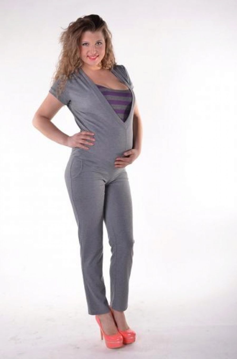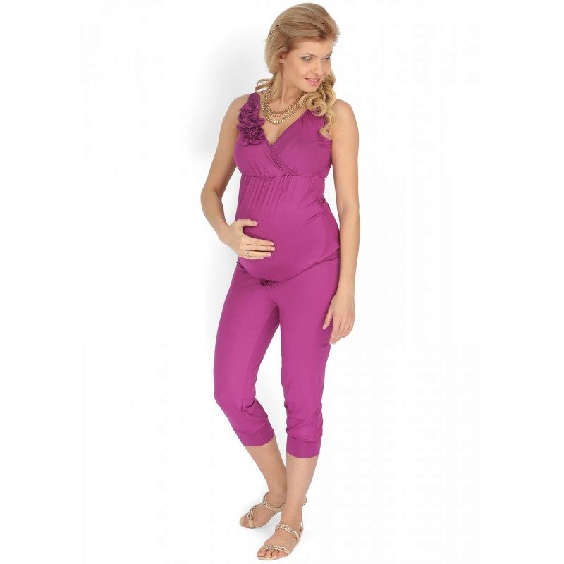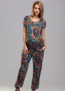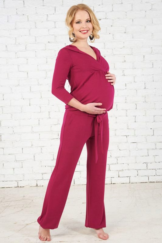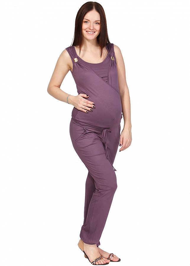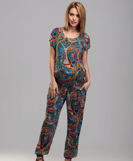 This jumpsuit can be used after pregnancy. The top, made in the form of T-shirts, allows the mother to comfortably feed the baby. Due to the color looks stylish and interesting.