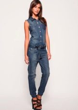 Summer jeans overalls do not lose their relevance. As a rule, these are short models with shorts or capri pants. Also in the summer of 2017, a long denim version would be appropriate. An interesting solution for a flawless figure is a jeans jumpsuit with a tight bottom and an open strapless upper part. In the fashion is also a naked back, low waist and asymmetrical cut top.