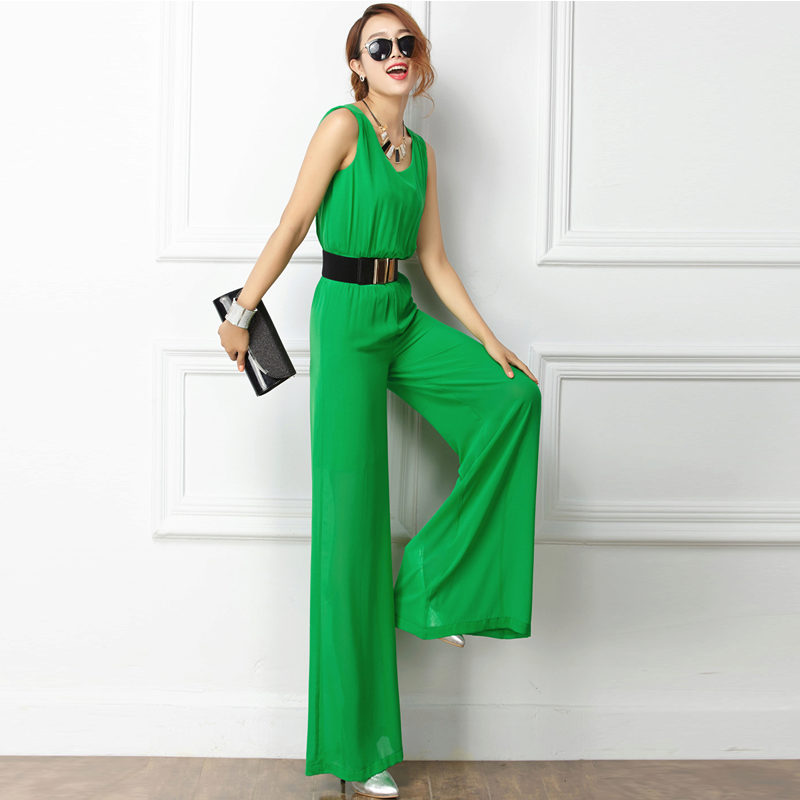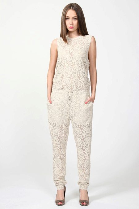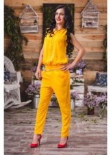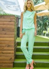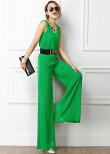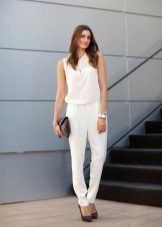 A light jumpsuit made of chiffon, silk or satin will help you create a romantic image. Flowing silhouette makes the figure elegant. Often such things are decorated with belts, flounces, bows.