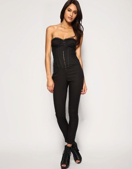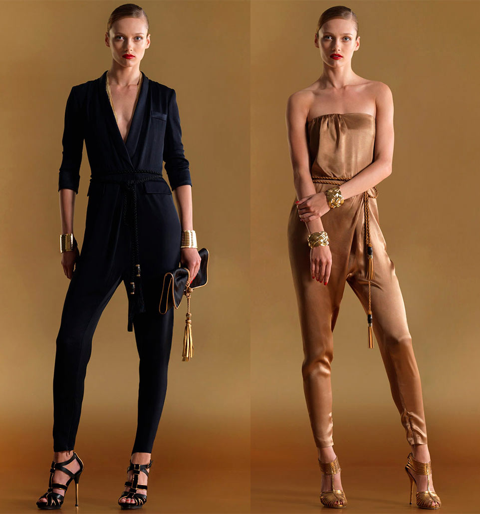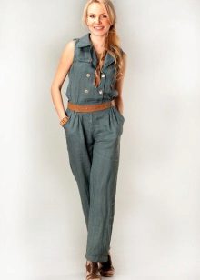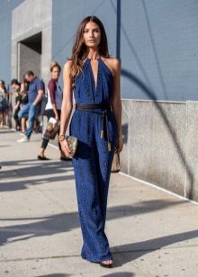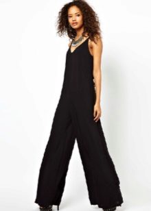 Looks great overalls with long wide trousers (especially in combination with high heels), ideal, along with an evening dress, suitable for special occasions.