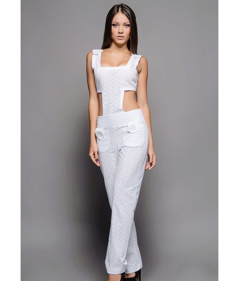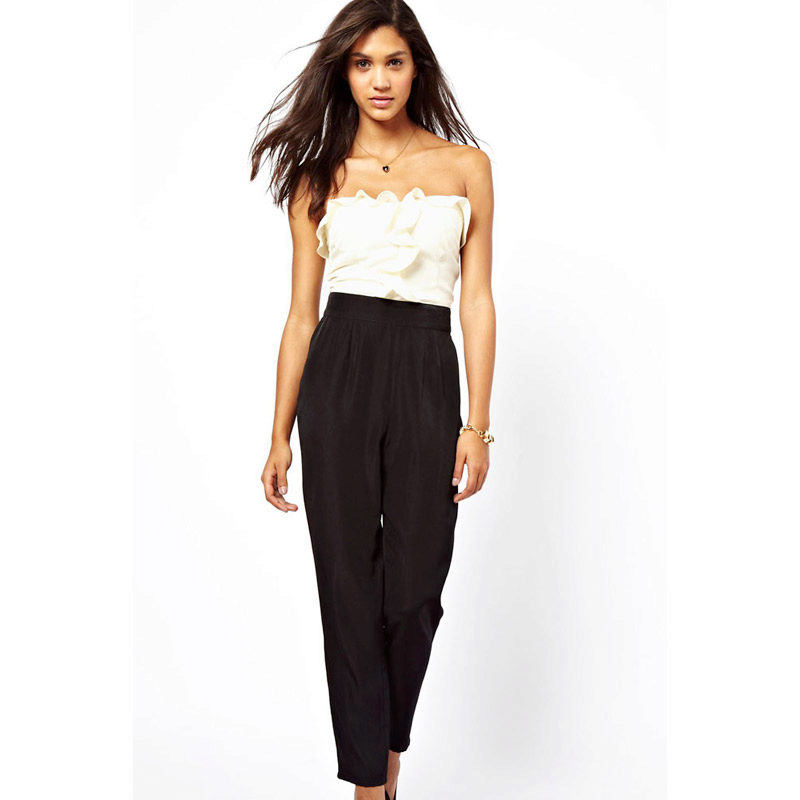 The white jumpsuit looks elegant in every situation. The long sleeved version is suitable for the office, and the seductive model with slits at the waist is ideal for a romantic date. White light silk or chiffon jumpsuit will create a gentle, feminine look.