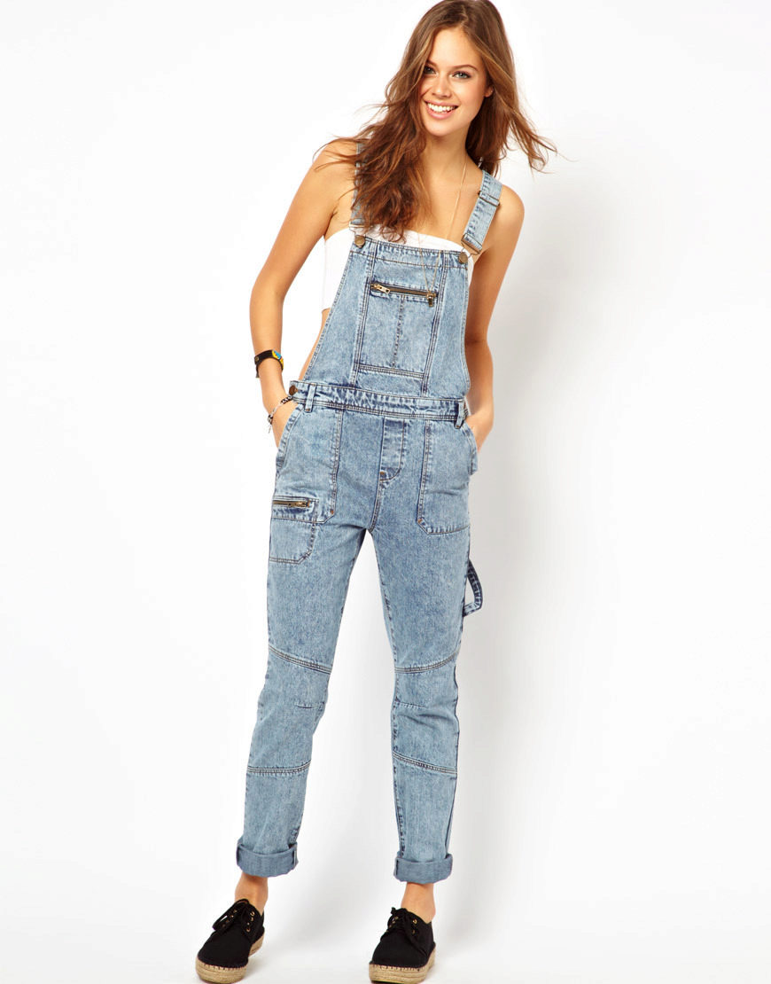 As for denim overalls, they can be not only the traditional blue or blue colors - heterogeneous pattern and wear are in fashion.