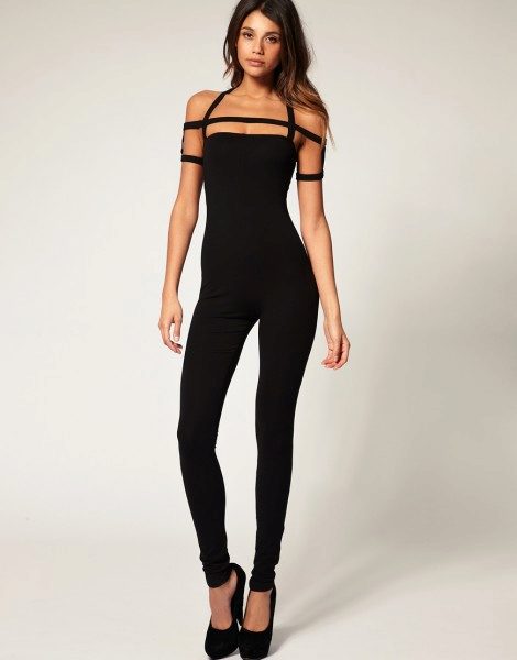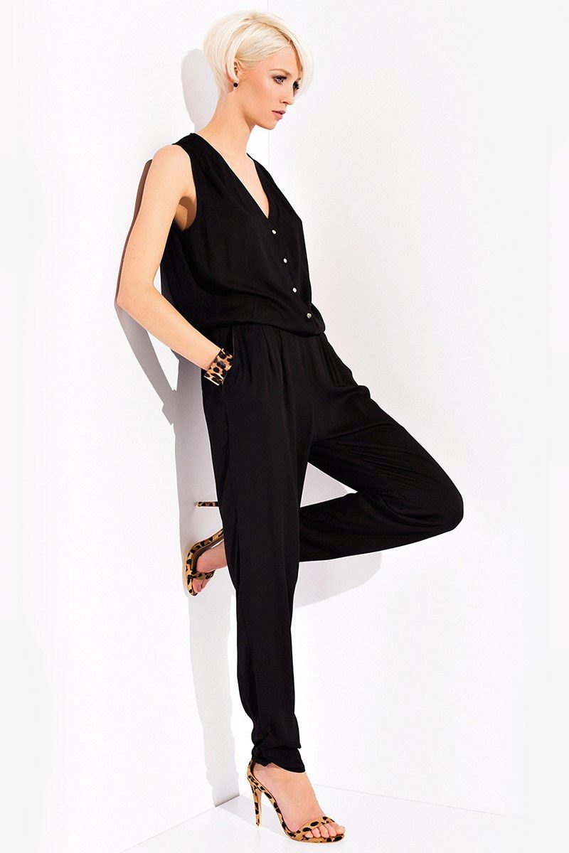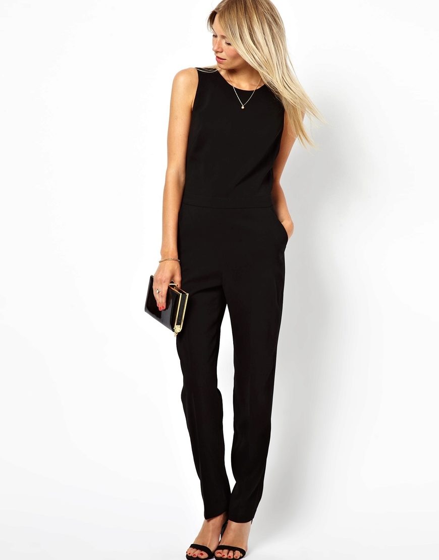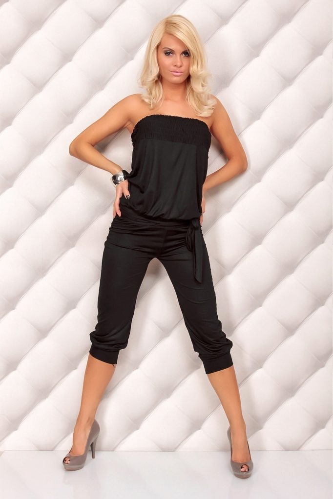 Classic black color perfectly accentuate tanned skin. This is a great option for a business meeting. On the black background of the jumpsuit, metal decor looks spectacular (for example, buckles on the straps). The severity of this color can be compensated by extravagant solutions - a deep neckline on the chest or a translucent bodice.