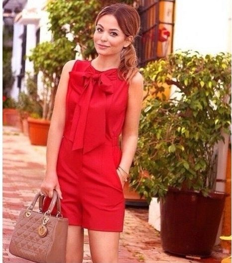 In the season of 2017 in bright red color for brave girls. More restrained models of overalls are made in soothing shades of red. Unusually looks print on a red background (stripes, stains).