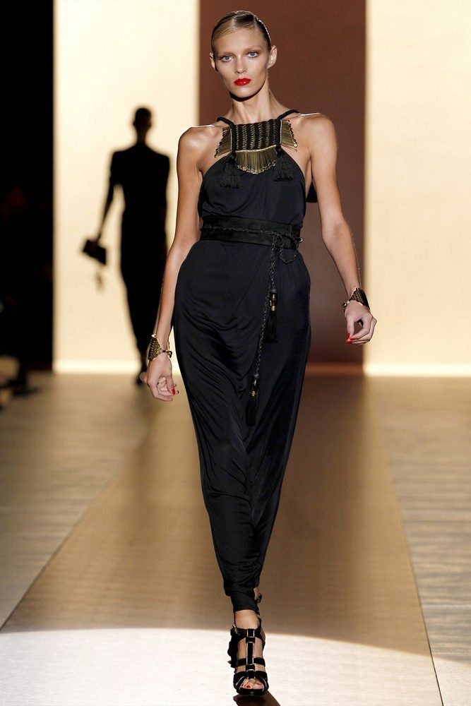 In autumn and winter, it is not very convenient to wear a jumpsuit under a jacket and combine with jackets and fur coats. This did not stop world couturiers and many have released fall-winter collections with more dense fabrics. Although the evening models were left with light fabrics.