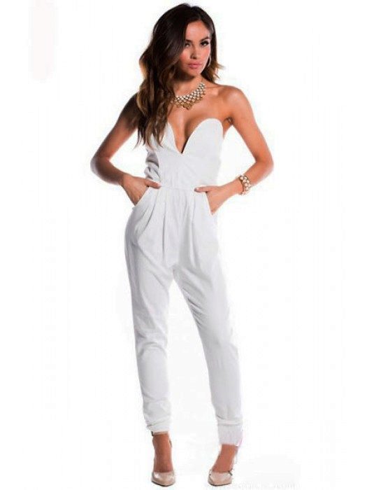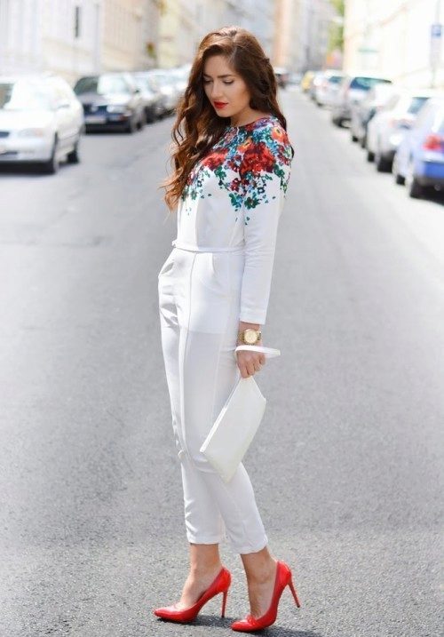 A white jumpsuit is a hit not of one season. Thanks to this color, the girl will look young and fresh. It will look especially good on tanned girls.