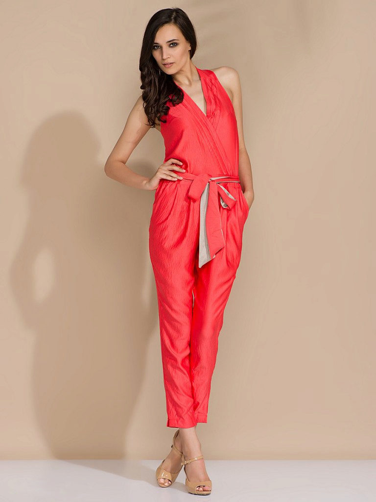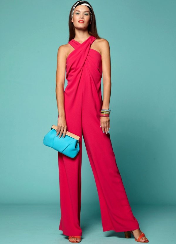 You can wear an open back jumpsuit for a celebration or social eventFor example, in red. You will attract attention in it, but you will not look vulgar.