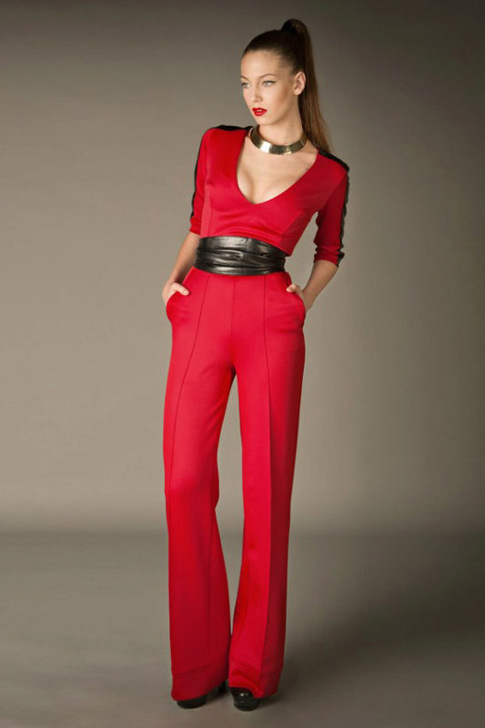 A bright red jumpsuit is a worthy replacement for a bright red dress. This color is for the most daring and audacious women who are 100% sure of themselves. Overalls can be both short and long, and in those, and in those you will look stylish and fashionable. Each designer in the collection has overalls of this color and there is no hint of vulgarity in them. It can be not only red, but also its various shades.