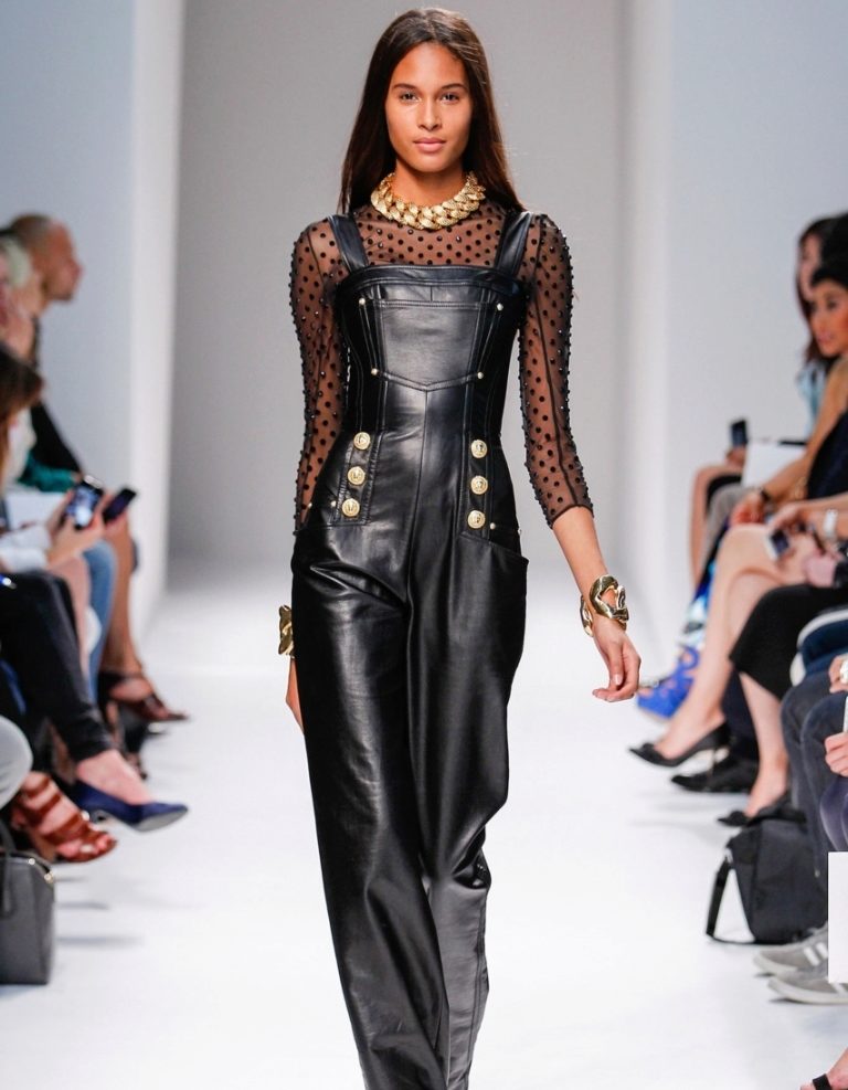 Very relevant leather overalls. Actual black colors.