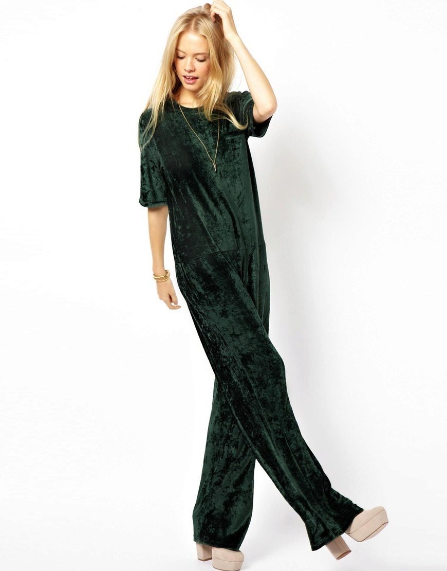 If you want to look fashionable in winter, the most current outfit will be - this is a velvet jumpsuit. Such a model is represented in the Topshop Unique and Roksalanda collections. Muffled colors with a minimum of detail. You can complement the image with shoes with a sharp nose.