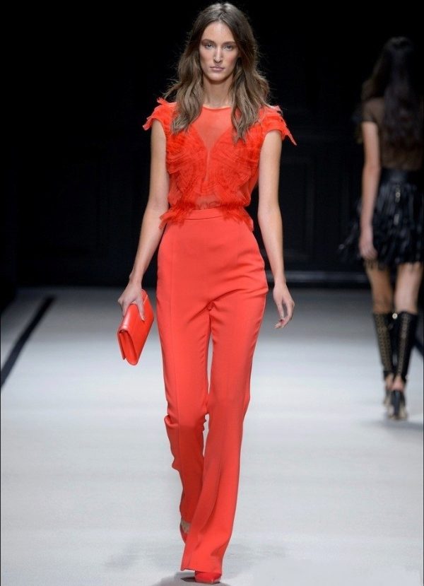 One of the most popular colors this year is red. It attracts attention and will not leave anyone indifferent. You can even combine several shades, such as a jumpsuit of light red color, and a scarlet top on top. Such models can be seen in the collections of Cristiano Burani.