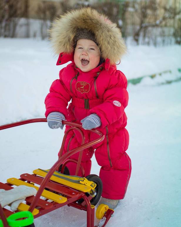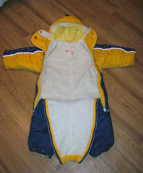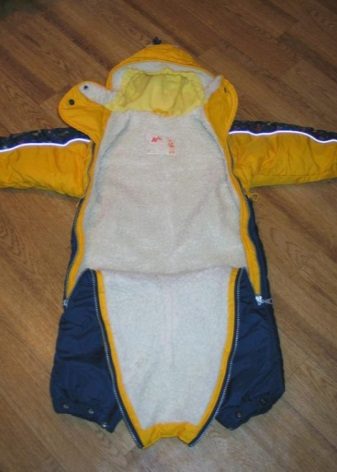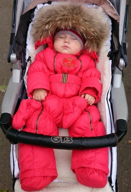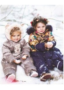 For children of two-three years old, a hooded jumpsuit is ideal. For harsh winters, preference is given to downy models. The envelope with a feather insulation is ideal for long walks. It contains 80 percent down and 20 percent feather.