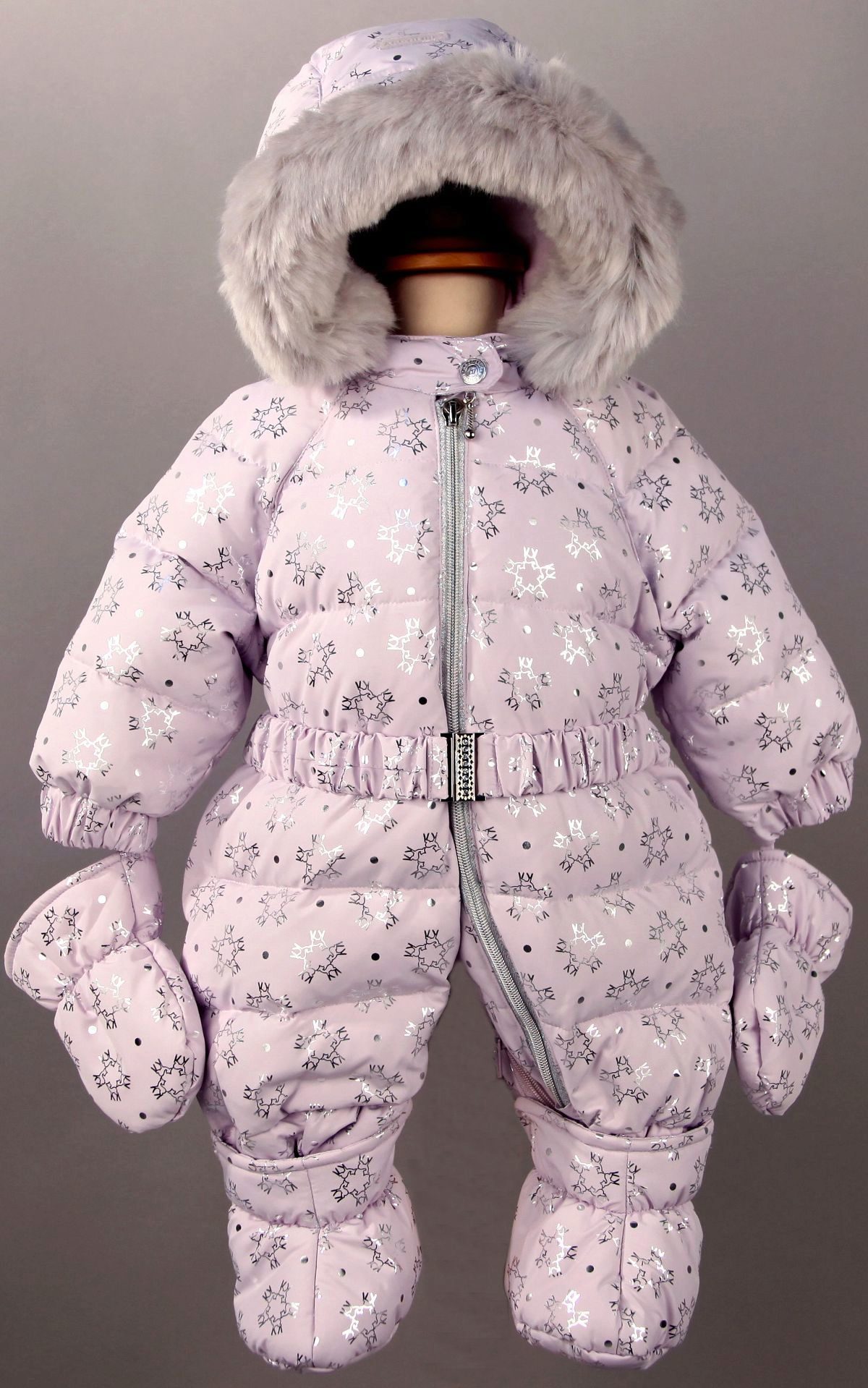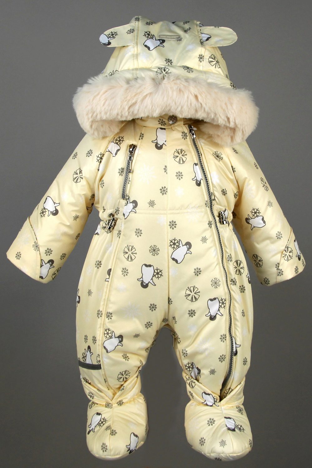 Another popular model is the Lilu jumpsuit. He has on the edge of the edge of the Finnish raccoon. Down lining warms well even at minus 30 degrees. The complex includes booties and mittens. The jumpsuit is fastened with two zippers for the convenience and comfort of the baby. Solid colors look beautiful and stylish. Small ears on the hood make the jumpsuit fun and fashionable.