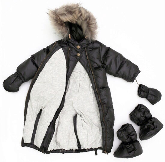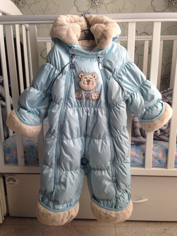 For children up to one year old transformer overalls will be an excellent option. At first it can be used as an envelope, and when the baby grows up and begins to learn about the world around, then it can be easily transformed into a jumpsuit with “legs”. In the envelope, the baby will be comfortable and warm, and the little restless person will run along the street in overalls.