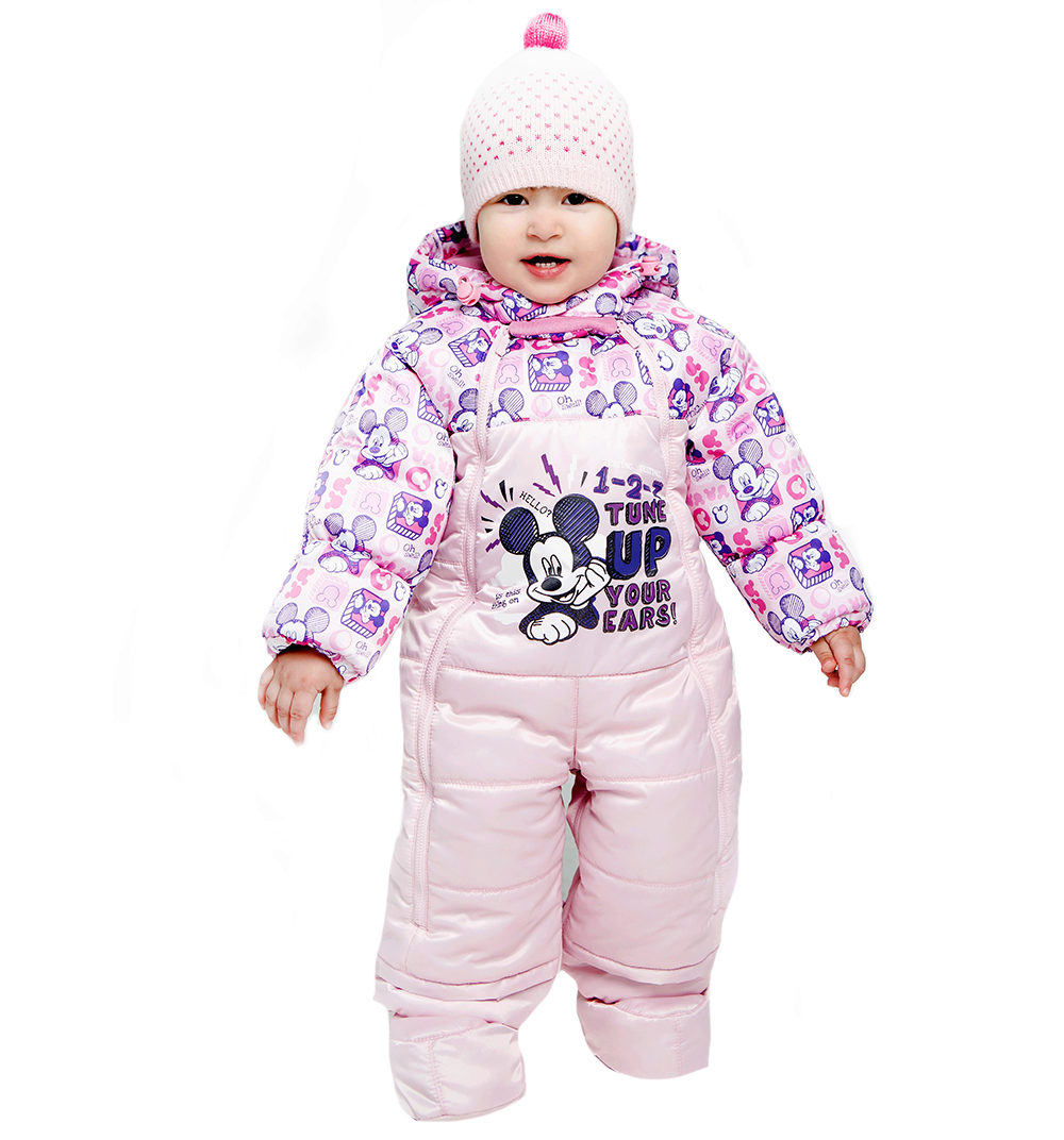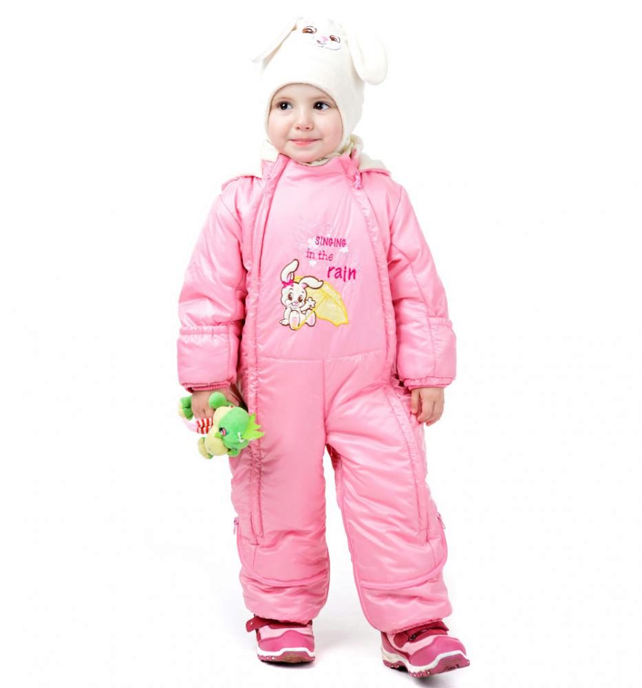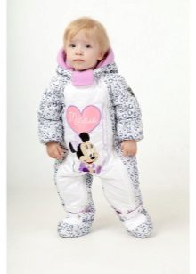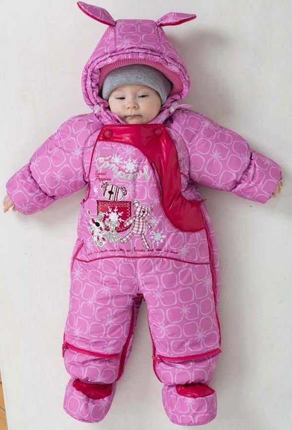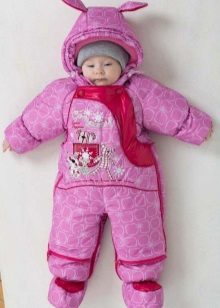 - For girls you can find a beautiful pink jumpsuit. It can be decorated with funny bunny, Winnie the Pooh, Teddy Bear and other fairy-tale characters. In such overalls, every girl will look like a princess.