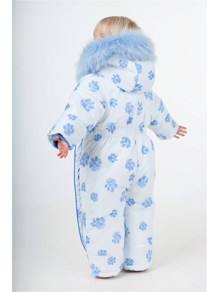 The hood has a fur edging, which is also easily detachable. On the cuffs of the sleeves are special valves that provide additional protection from the wind.Warm booties fasten on the snap. The neck and chest of the child is reliably protected from the wind due to the additional strap, which is fastened with velcro. The transforming overalls very conveniently put on thanks to two lightnings on each side.