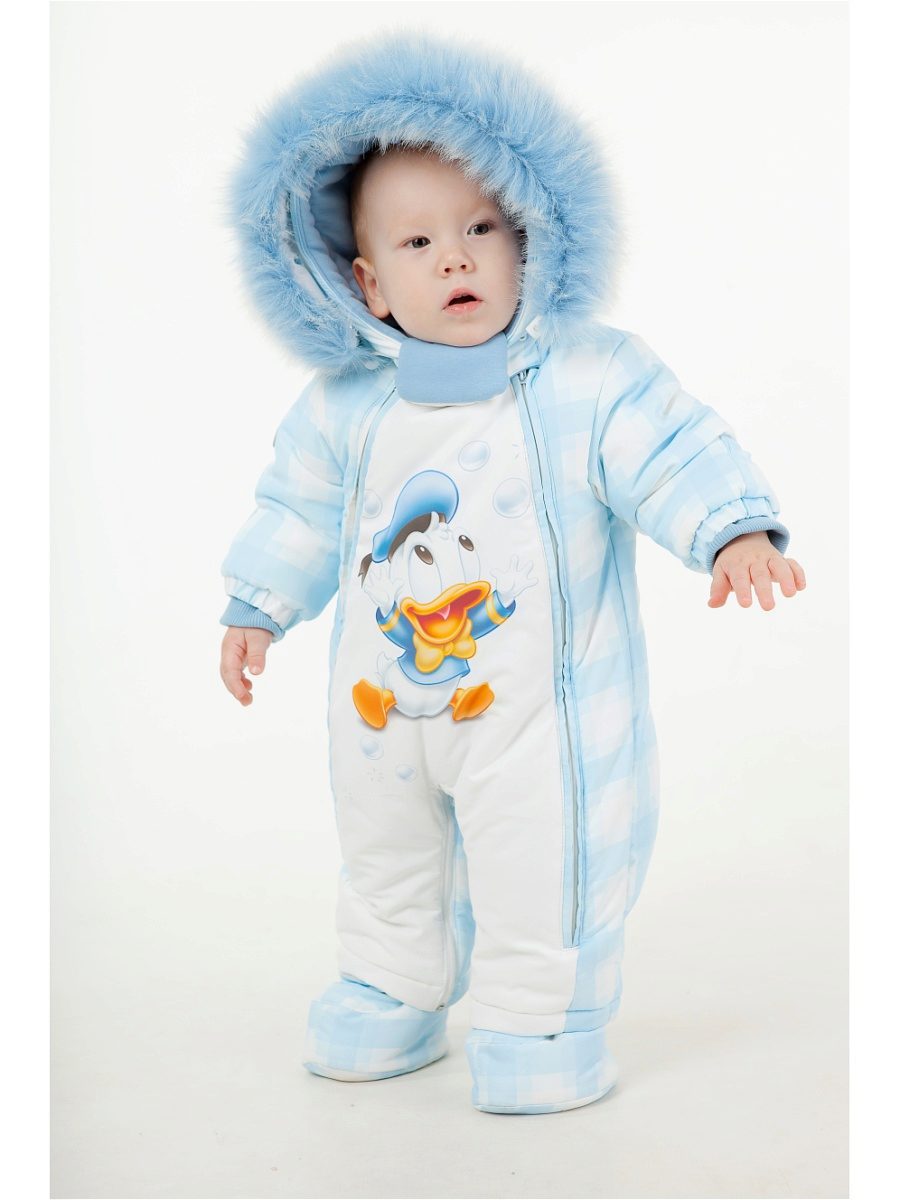 - Overalls for boys are presented by more practical color schemes. Looks stylish combination of two colors - blue and white, lilac and light green, blue and red. The transforming overalls of blue color decorated by baby Donald look spectacular.