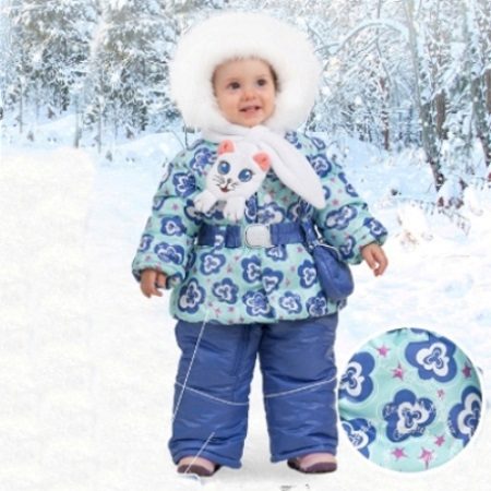 Winter overalls are multi-layered. The manufacturer uses several layers to make the baby feel comfortable and comfortable even in severe frosts. The upper fabric is represented by twill, taffet or other windproof materials. The brand uses a synthetic winterizer or shelter as a heater. The lining is sewn from a warm and pleasant footer or polarflisa.