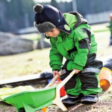 Children's clothing of this company is suitable mainly for mobile children. The presence of a more dense fabric on the knees and elbows of overalls gives them extra strength. In this clothes, children feel comfortable in a wide temperature range.