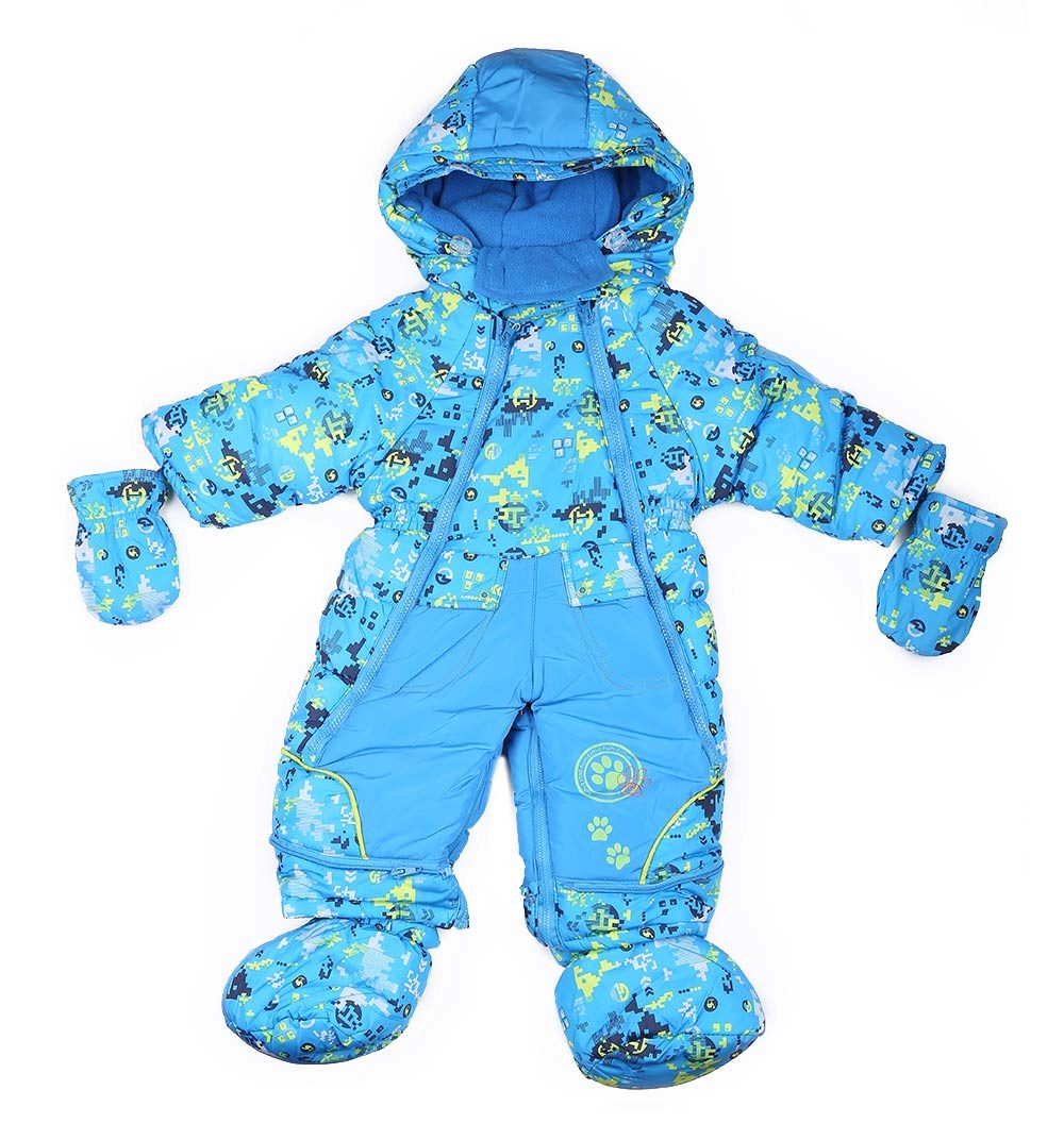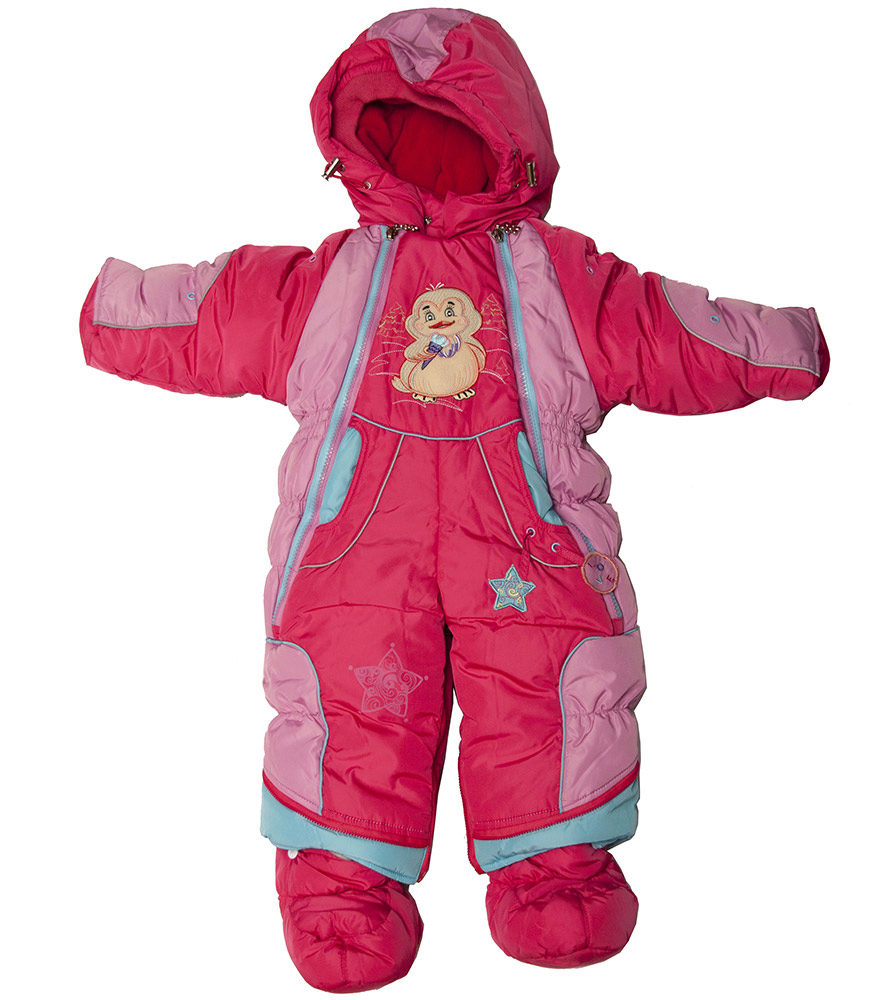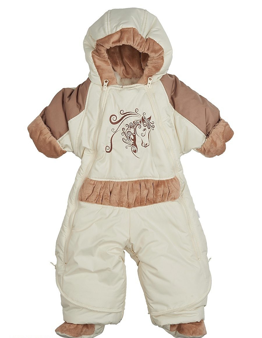 - For children up to one and a half years old a transforming overalls is the ideal choice. For convenience, it has two zippers that start from the knees. Due to the presence of two zippers in the inner step seam, mummies will be able to change the diapers without problems, while not removing the overalls.