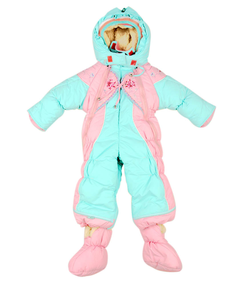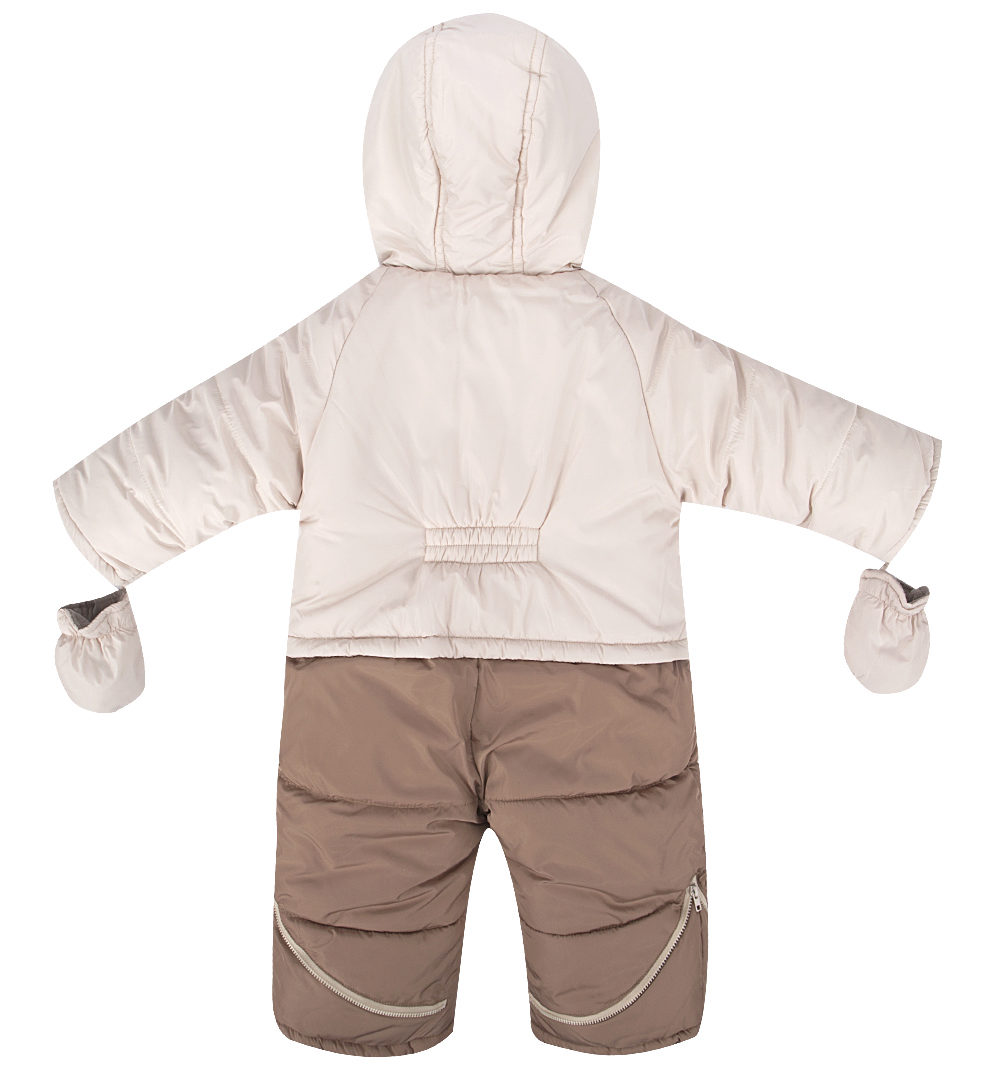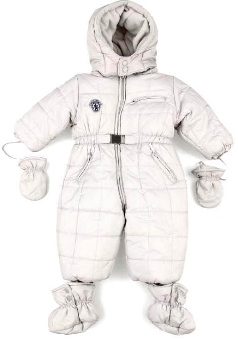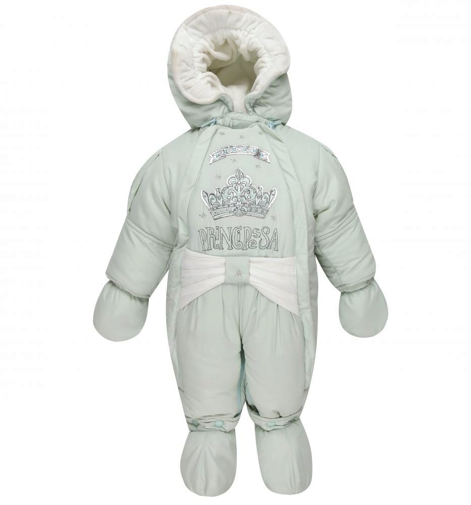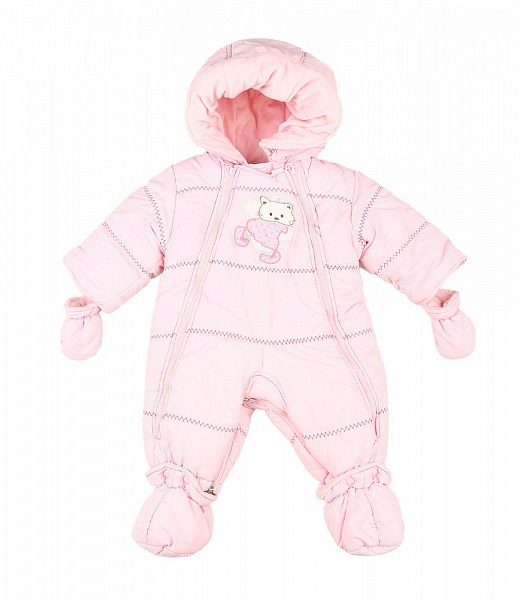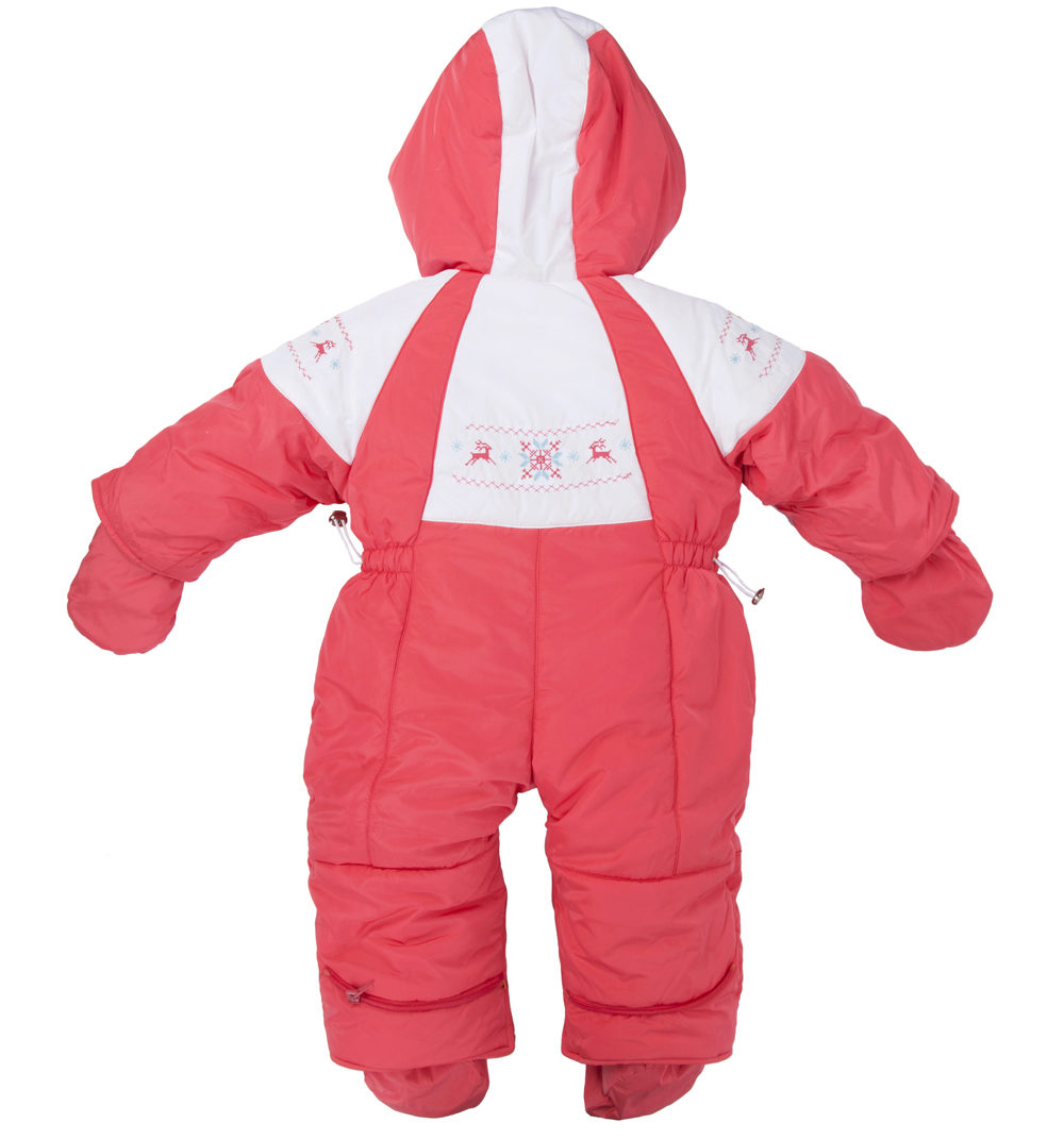 There are elastic bands at the bottom of the legs, and in addition there are soft booties so that the baby’s feet are always warm. Handles are made for soft mittens that are attached to the sleeves. The deep hood has a cord in the drawstring, with which you can adjust the girth of the face.