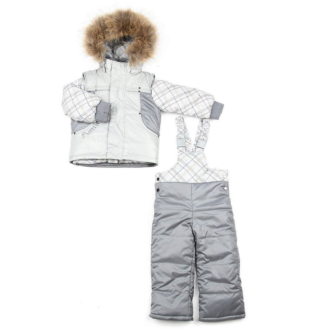 - For harsh winters, the Fun Time brand offers a three-piece jumpsuit that, in addition to a jacket and semi-overalls, also includes a stylish vest on sheepskin. The jacket has a double level of protection against cold, because it is zipped and on the buttons. The set is made of one hundred percent polyester. Holofiber is used as a filler, and the backing is made of natural sheepskin.