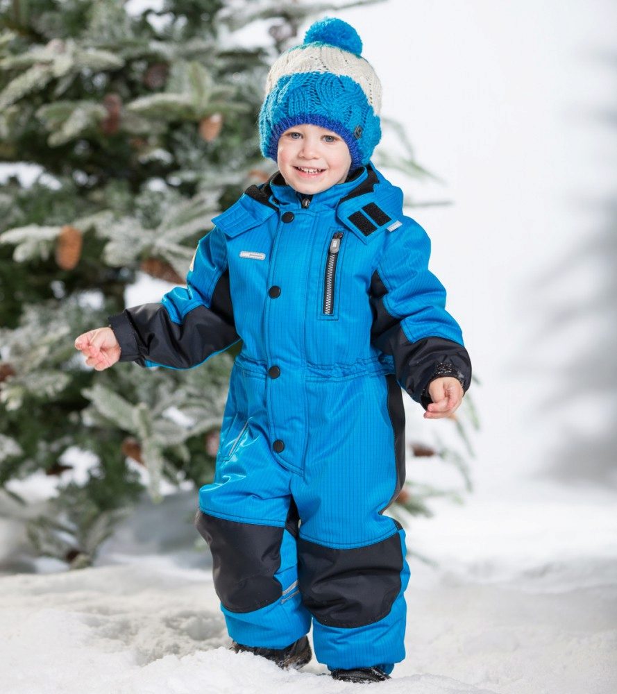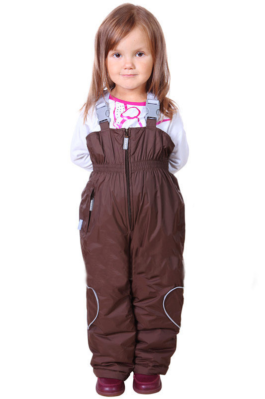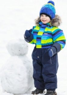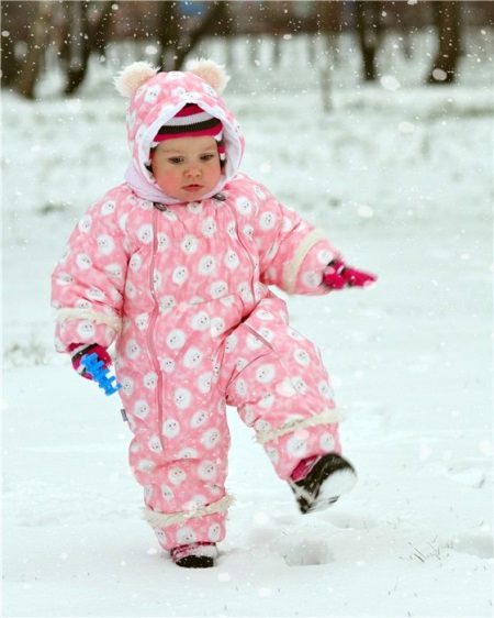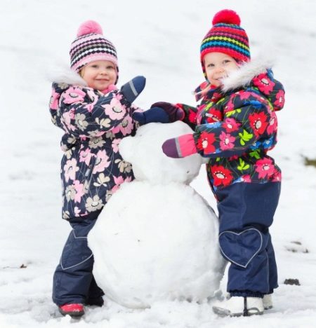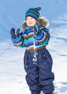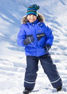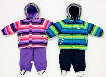 Children of preschool or school age can wear a set of jackets and semi-overalls. This option is more practical, because the straps at semi-overalls allow you to adjust the length of the product. Even with the active growth of the child will be able to wear a set of more than one season. The semi-overalls has strips in the bottom of pant legs to prevent penetration of snow or moisture inside. Elastic bands are located on the sleeves, and the zipper closes on the bar, which at the top prevents the child’s skin from touching the zipper.