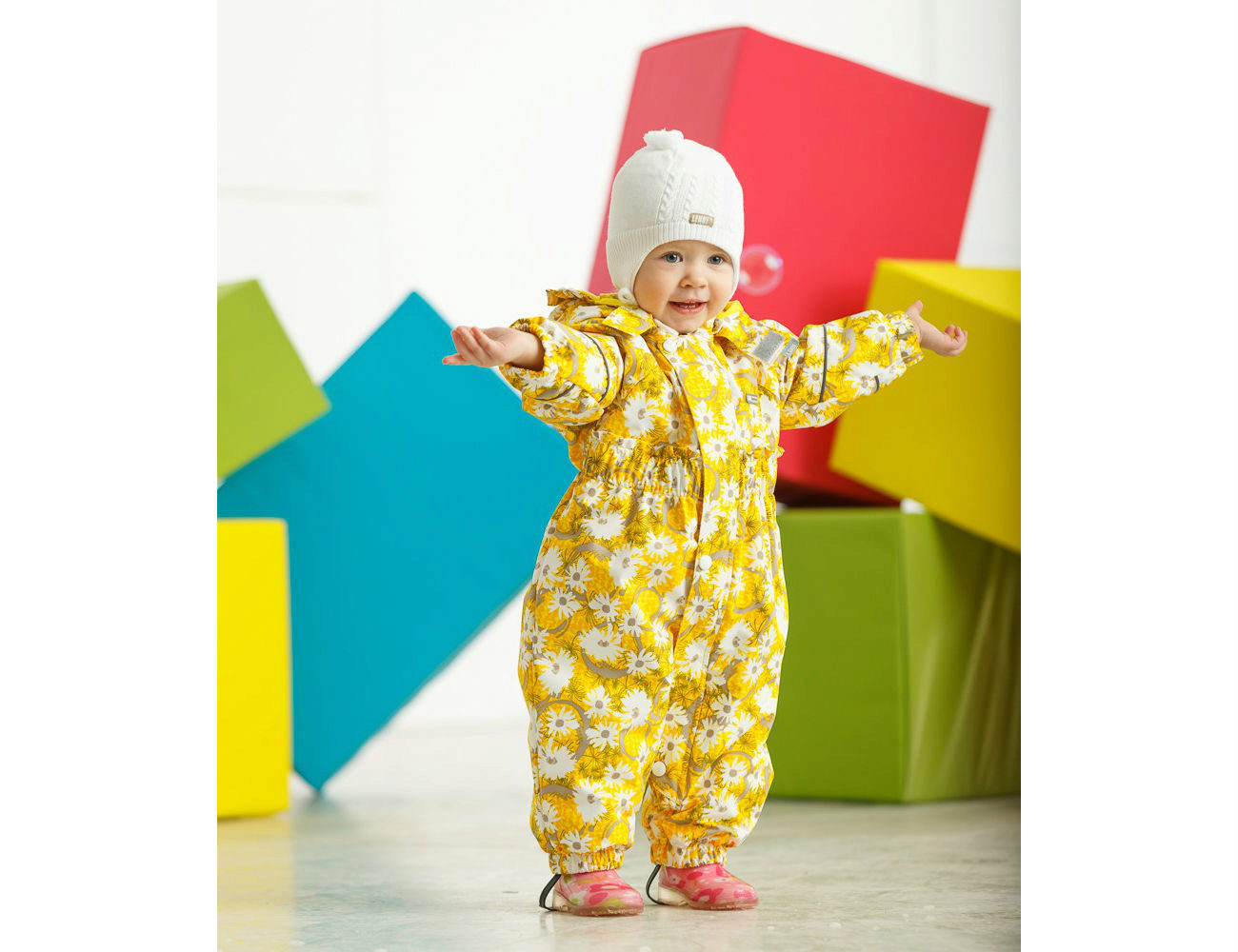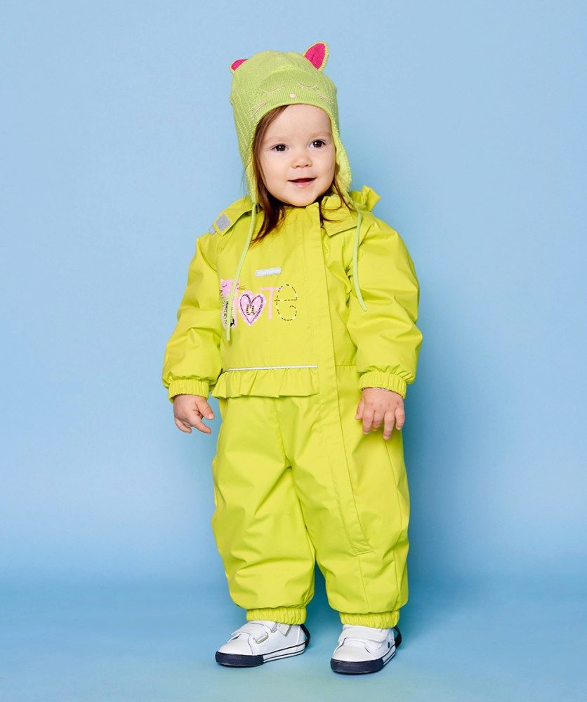 The high-tech fabric removes steam from the inside to the outside, and does not get wet, so the kid can walk even in rain or snow. All materials are characterized by environmental safety and do not cause allergic reactions. Even with active games baby does not sweat.