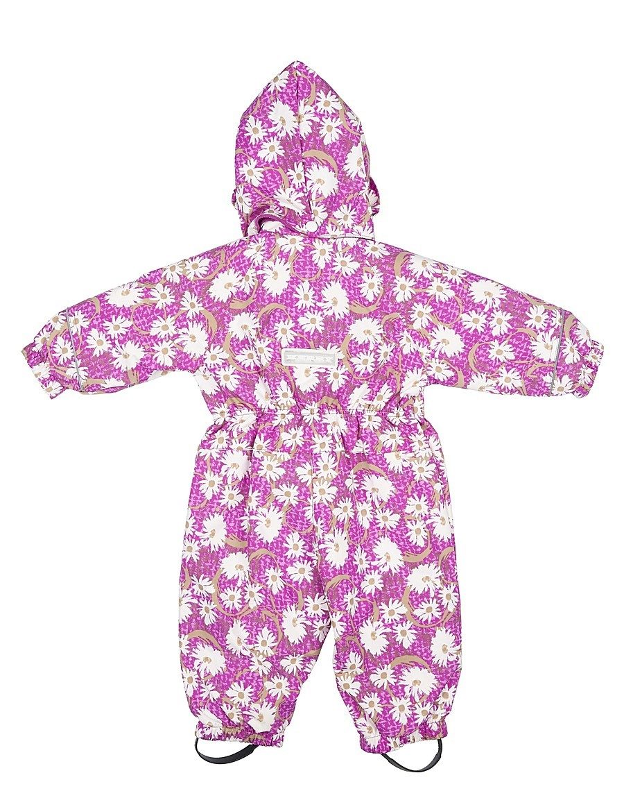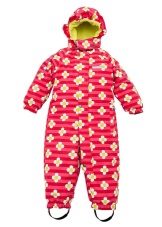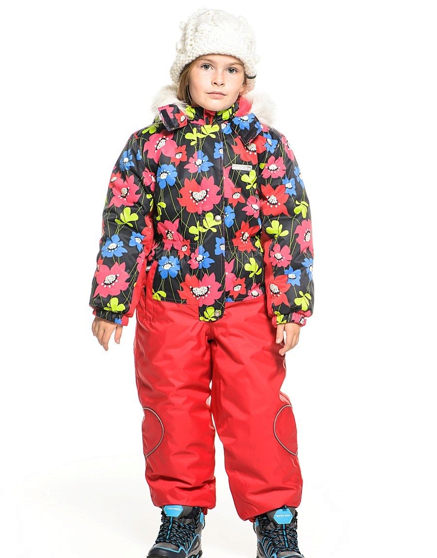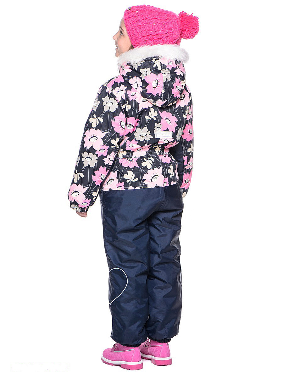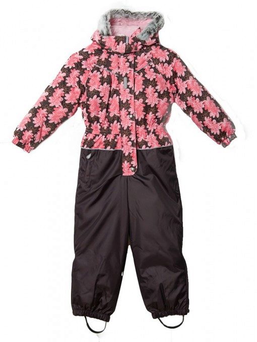 Older girls will surely have a bright and stylish Rosie jumpsuit. Insulation density is 330 g / m3, so in such a suit you can walk outside even in the worst frost without fear. The upper material of the jumpsuit is highly practical, it is easy to wash, dries quickly, has excellent wear resistance. The hood of the jacket is decorated with a fur edge; a bright floral ornament is used as a print.
