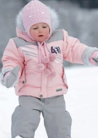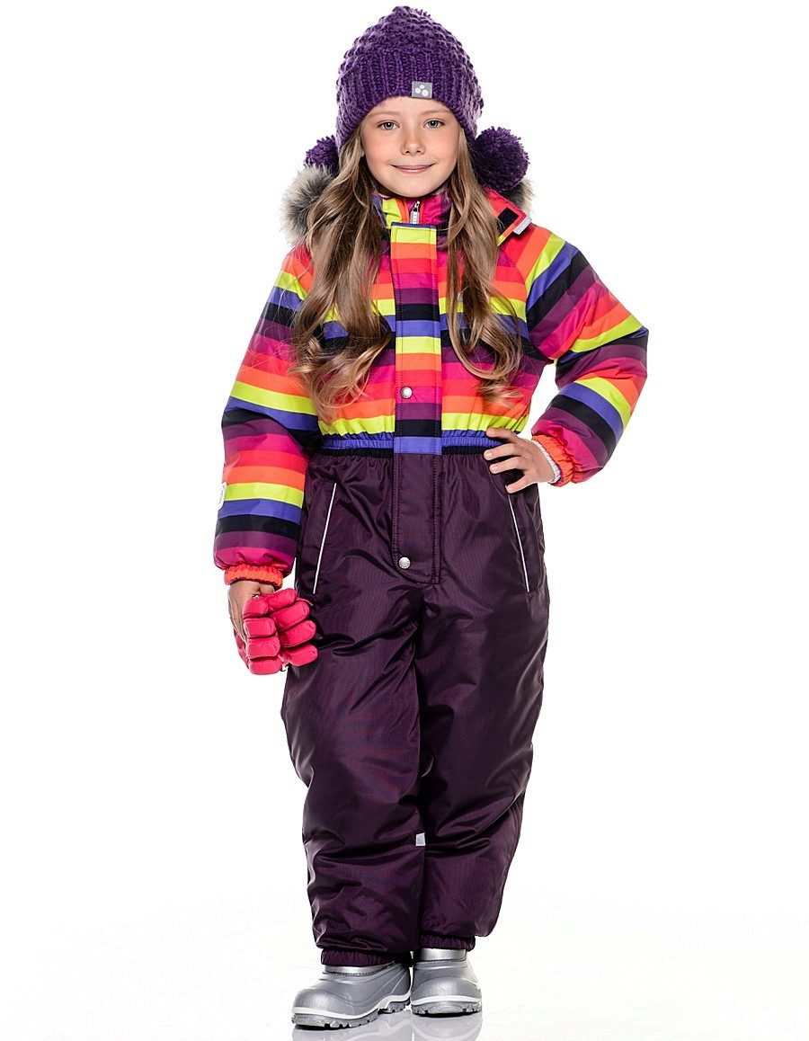 For older kids, another one-piece jumpsuit is presented - Lilith. The model provides for a long zipper and windproof valve. An additional plus is a wide elastic band sewn into the belt. Thus, the jumpsuit as tightly as possible, but gently fits to the body of the child, not holding down the movements, but retaining heat.