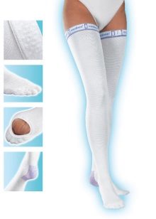 Any compression garment must be worn correctly, only this is the way to achieve the desired result in its application. Medical underwear (most often, it’s knee-highs, stockings or pantyhose) should be worn immediately after waking up, not yet getting out of bed, until a liquid begins to accumulate in the legs, which subsequently leads to edema.